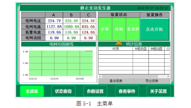 SVG静止无功发生器作为一种常用的电力设备,但是在操作上很多人还是不够太熟练,今天浙轮电力简单为你讲解下产品显示屏主页都有着哪些操作页面:
