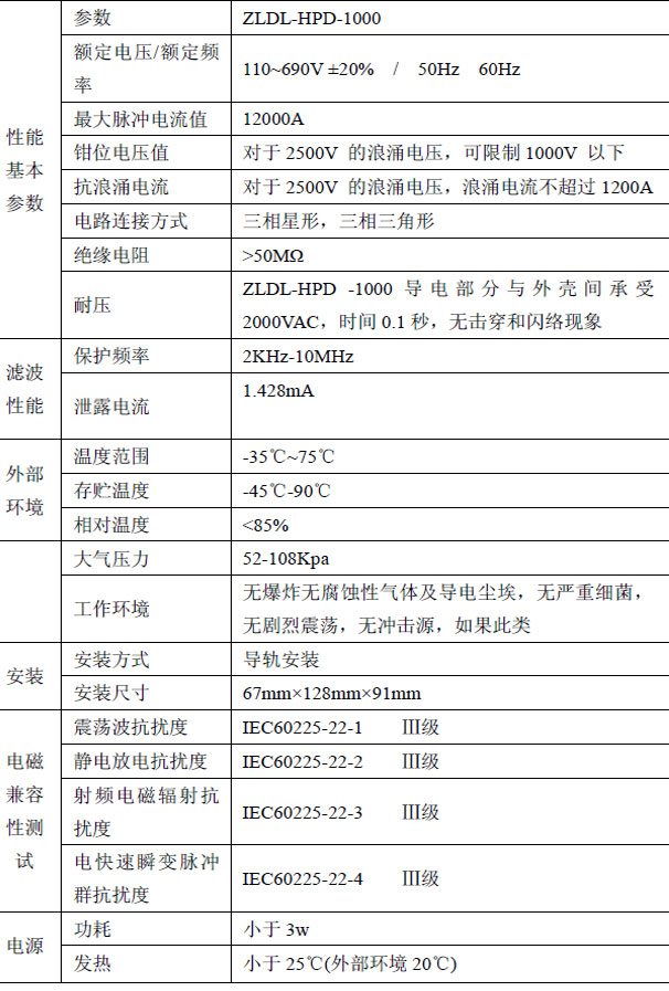 ZLDL-HPD-1000符合IEC61000-4-5.IEC60939-1-2等标准。