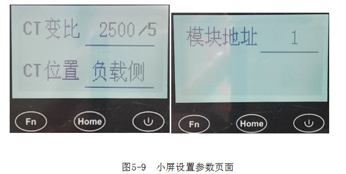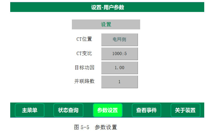 装置起停、目标功因、CT变比、CT位置、模块地址。