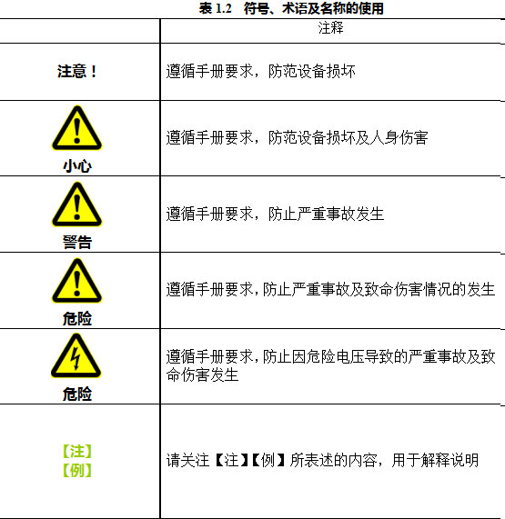 以下的符号、术语及名称用于本操作安装手册。