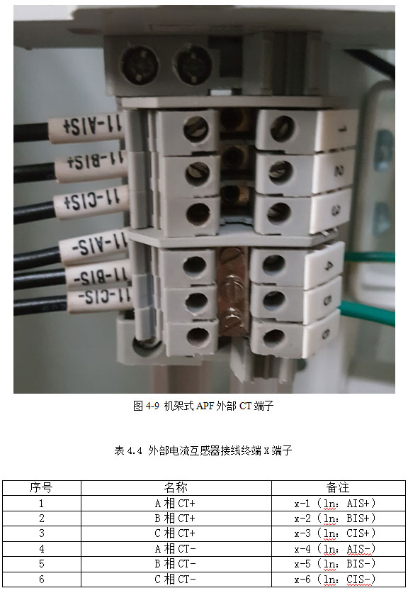 【注】:APF装置的电气部分的安装必须由经过培训的合格工程师依据“电工法则”进行,严禁其他人员违规进行安装,本手册只介绍安装的基本内容,具体安装细节请参考电工规范。