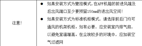 ZLDL-APF机架式安装方式前面提供进风口,后面提供出风口;壁挂式安装方式提供下进风口,上出风口。