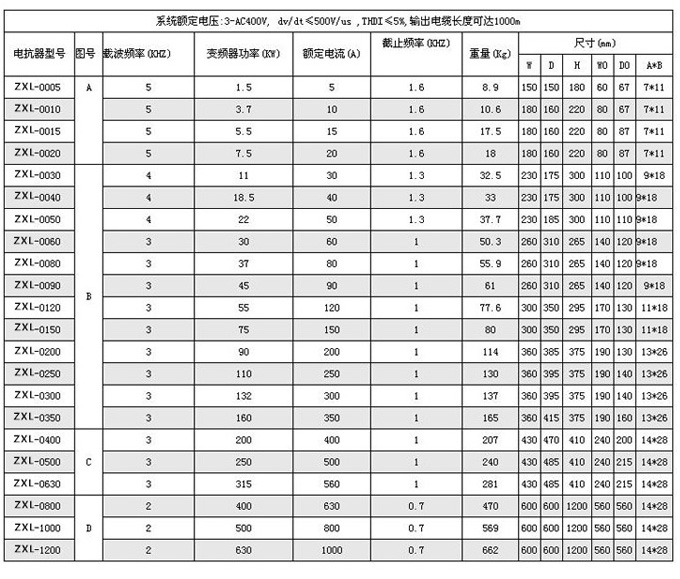 正弦波滤波器(UD=8%-12.5%)技术参数: